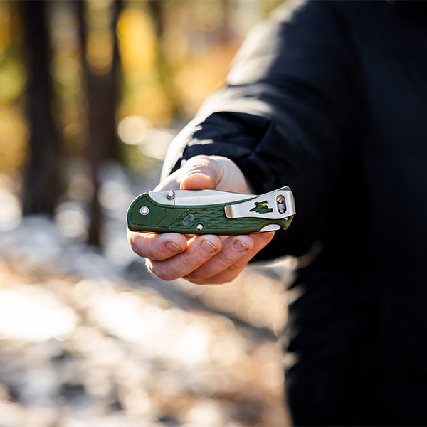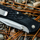 ブレードはサムスタッド付きで片手で素早くアクセス出来、元の#110と同様の品質と剛性、最高のエッジ保持力を誇ります。