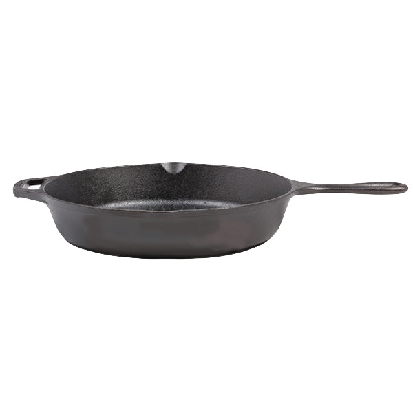 10-1/4インチ(内径26cm)で、アメリカでも人気のサイズです。グリル:網焼きができるフライパンでステーキや野菜に綺麗な焼き目をつけることができます。ハンドル(柄の部分)の反対側にアシストハンドルがあり、両手で持ち上げることができ扱いやすいデザインです。スキレット全体が5mmの厚みで鉄の蓄熱力が高く、おいしく調理できます。