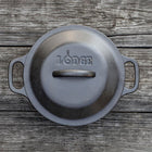 内径20cm、深さ7cmで、日本のキッチンでも使いやすいサイズです。煮物やカレー、揚げ物、炊飯などマルチに使えます。鍋全体が5mmの厚みで、鉄の蓄熱力を上げ、焼く、蒸す、炒める、煮るなど全ての調理法に適しています。付属の蓋がより調理の幅を広げ、性能を発揮します。