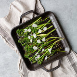 シェフからのフィードバックを生かして作られたプレミアムラインです。横幅26.6cmで、アメリカでも人気のサイズです。シェフコレクションは人間工学に基づいており、ハンドル部分はカーブして握りやすいようにデザインされています。グリル:網焼きができるフライパンでステーキや野菜に綺麗な焼き目をつけることができます。ハンドル(柄の部分)の反対側にアシストハンドルがあり、両手で持ち上げることができ扱いやすいデザインです。スキレット全体が5mmの厚みで鉄の蓄熱力が高く、おいしく調理できます。
