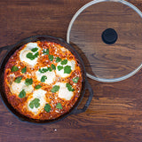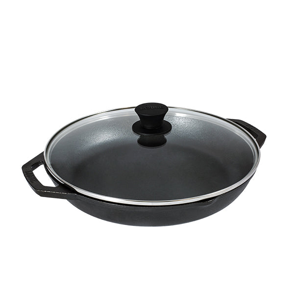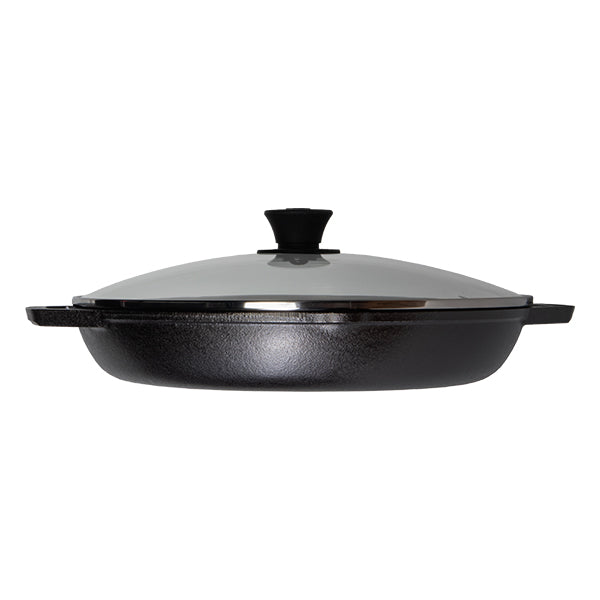 シェフからのフィードバックを生かして作られたプレミアムラインです。大家族のステーキを一気に焼いたり、煮込み料理にもお勧めです。ラウンドしたボトム部分はかき混ぜるにもむらがなく、注ぎやすく、お手入れもしやすい形状です。グラスカバーもが付属しており、水分を逃さず調理できます。ガラス素材は食材の状態を確認できるので便利です。鍋全体が5mmの厚みで、鉄の蓄熱力を上げ、焼く、蒸す、炒める、煮るなど全ての調理法に適しています。