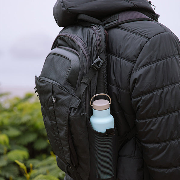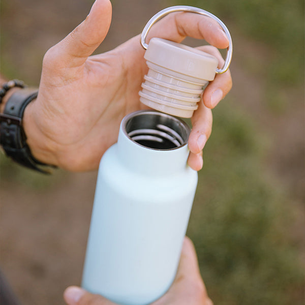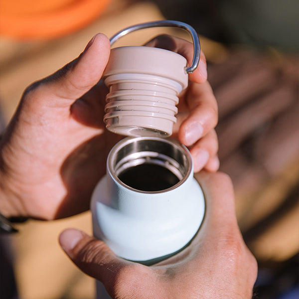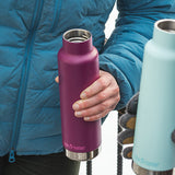 長時間のアウトドアやスポーツのお供には、592mlの容量は水分補給にも安心です。パーツが少なく、ラウンドしたボトル内部はスポンジが届きやすく毎日のお手入れも容易で、清潔に保つ事ができます。蓋についたループで持ち歩きもラクな上に、カラビナなどを使いぶら下げる事も可能。スリムなボディで、ほとんどのドリンクホルダーにすっぽり収まり、手の小さな方でも持ちやすくなってます。スリムですが、飲み口が広いので、氷が簡単に入れられたり、お手入れもしやすく清潔に保つ事ができるのも、魅力の1つです。バックにも入れやすいコンパクトサイズで、毎日の持ち運びに便利です。オフィスでのコーヒーマグとして、携帯できるタンブラーとして日常的に使っていただけます。高品質なステンレス製でシンプルなデザインが、洗いやすく清潔に飽きずに長く愛用してもらえるポイントです。真空断熱構造により温度を保ってくれるので、夏は冷たく、冬は暖かいドリンクを持ち歩けます。