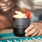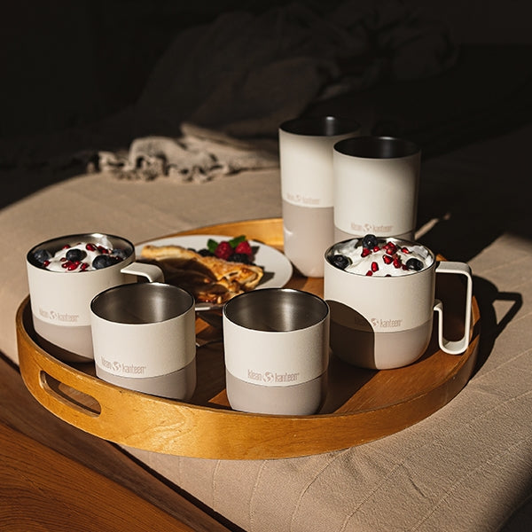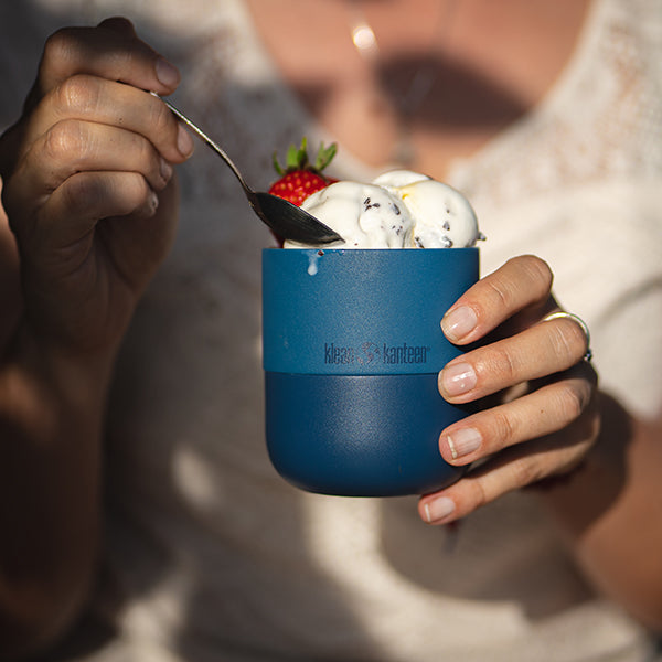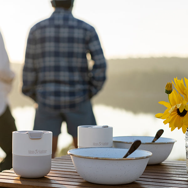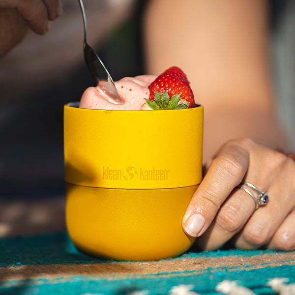 Klean Kanteenは環境問題に配慮したリサイクルステンレスを使用する取り組みを強化しており、ライズコレクションもその大きな一歩です。90%リサイクルされた18/8ステンレスを使用することで、ステンレスから排出される温室効果ガスの50%削減に成功しました。また、ライズコレクションを選ぶことで、この先消費するかもしれない一生分の使い捨て容器を、ライズローボウルに置き換えることができるかもしれません。