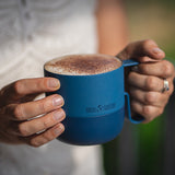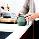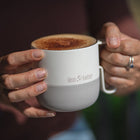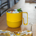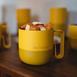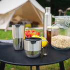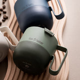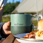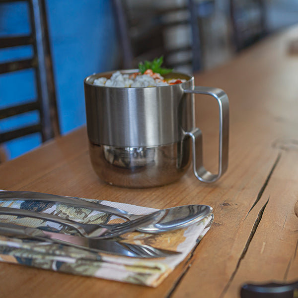 心地よく手にフィットする広めのグリップハンドルが特徴です。たっぷりのコーヒーはもちろん、スープやオートミールなどのお食事もしっかりと保温し温かいままお楽しみいただけます。開口部分が広いのでゴロっとした具のスープをよそうときにも便利です。