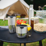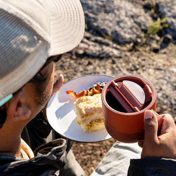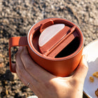 付属の専用蓋は、保温保冷効果を高め、転倒時にドリンクが全てこぼれてしまうことを防ぎます。(※防水ではありません)蓋は開けた部分を反対側へロックすることができ、飲み口が広いのでドリンクの香りも充分に楽しめます。リム(ふちの部分)を薄くデザインしたことで口当たりがよく、蓋を外して使用することも可能です。あなたのライフスタイルに合わせて、室内でもフィールドでもお好みのドリンクを楽しんでいただけます。