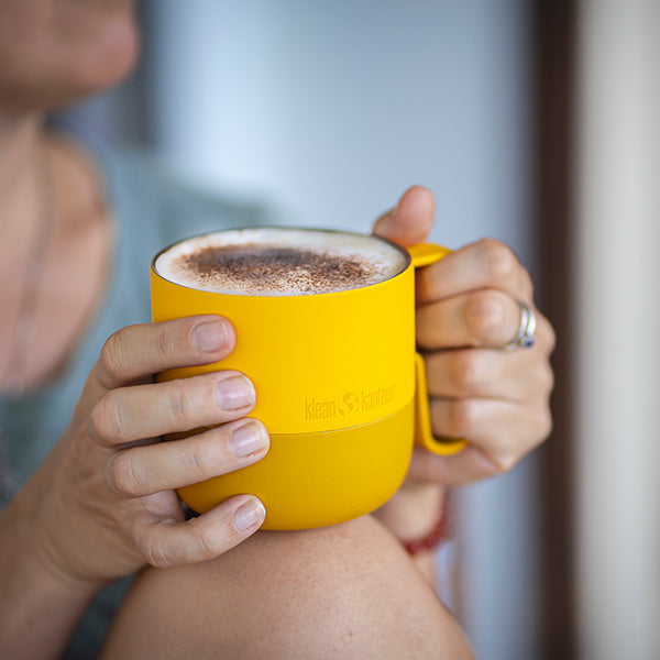 Klean Kanteenは環境問題に配慮したリサイクルステンレスを使用する取り組みを強化しており、ライズコレクションもその大きな一歩です。90%リサイクルされた18/8ステンレスを使用することで、ステンレスから排出される温室効果ガスの50%削減に成功しました。また、ライズコレクションを選ぶことで、この先消費するかもしれない一生分の使い捨て容器を、ライズマグに置き換えることができるかもしれません。