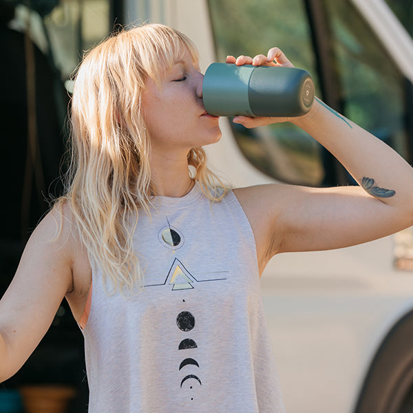 Klean Kanteenは環境問題に配慮したリサイクルステンレスを使用する取り組みを強化しており、ライズコレクションもその大きな一歩です。90%リサイクルされた18/8ステンレスを使用することで、ステンレスから排出される温室効果ガスの50%削減に成功しました。また、ライズコレクションを選ぶことで、この先消費するかもしれない一生分の使い捨て容器を、ライズタンブラーに置き換えることができるかもしれません。