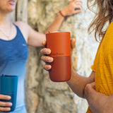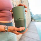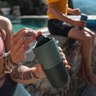 付属の専用蓋は、保温保冷効果を高め、転倒時にドリンクが全てこぼれてしまうことを防ぎます。(※防水ではありません)蓋は開けた部分を反対側へロックすることができ、飲み口が広いのでドリンクの香りも充分に楽しめます。リム(ふちの部分)を薄くデザインしたことで口当たりがよく、蓋を外して使用することも可能です。あなたのライフスタイルに合わせて、室内でもフィールドでもお好みのドリンクを楽しんでいただけます。