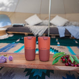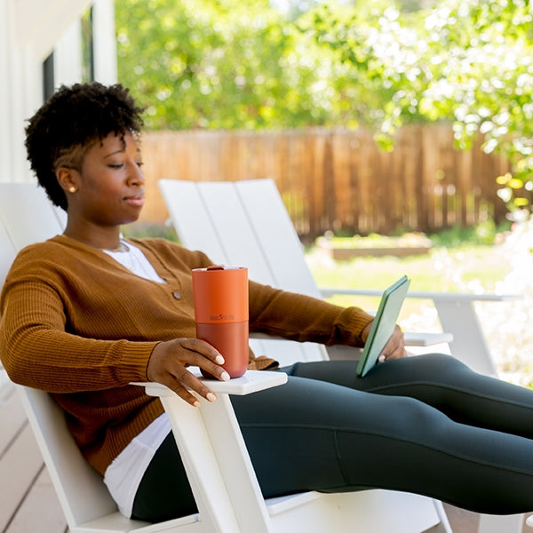 ほどよい丸みがあり心地よく手にフィットするデザインで、お気に入りのコーヒーショップに持ち込むのにもぴったりの使い勝手のいいサイズです。断熱性のあるタンブラーなので冷たい飲み物でも結露せず、温かい飲み物でも熱が伝わらないので、どんな飲み物でも美味しい状態をキープし持ち運べます。別売りのストローとも相性のいいサイズなので、氷をたっぷり入れてコールドドリンクを飲むのにもおススメです。