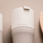 付属の専用蓋は、保温保冷効果を高め、転倒時にドリンクが全てこぼれてしまうことを防ぎます。(※防水ではありません)蓋は開けた部分を反対側へロックすることができ、飲み口が広いのでドリンクの香りも充分に楽しめます。リム(ふちの部分)を薄くデザインしたことで口当たりがよく、蓋を外して使用することも可能です。あなたのライフスタイルに合わせて、室内でもフィールドでもお好みのドリンクを楽しんでいただけます。