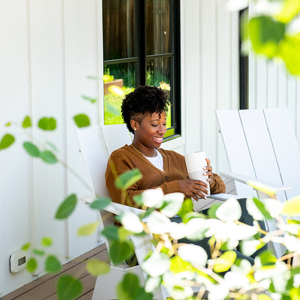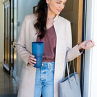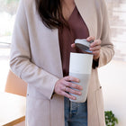 ほどよい丸みがあり心地よく手にフィットするデザインで、シリーズでいちばん大きなサイズです。マットで滑りづらい質感に加えタンブラーの下部は細くなっているので、片手でもお持ちいただけます。大容量のタンブラーはジムでの水分補給にもぴったりです。長時間のドライブでもお気に入りのドリンクを充分にお楽しみいただけます。保冷保温効果のある断熱素材を使っているので、大容量でもドリンクの美味しい状態をキープしてくれます。