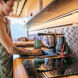 自然からインスピレーションを得たシンプルでベーシックな色彩と人間工学に基づいた流れるようなフォルムが特徴のライズコレクションは、おもてなしの美しいホームウェアとしてはもちろん、どんなアクティビティのお供にもなる、5サイズの展開です。Klean Kanteenは環境問題に配慮したリサイクルステンレスを使用する取り組みを強化しており、ライズコレクションもその大きな一歩です。90%リサイクルされた18/8ステンレスを使用することで、ステンレスから排出される温室効果ガスの50%削減に成功しました。また、ライズコレクションを選ぶことは、この先消費するかもしれない一生分の使い捨て容器を、ライズタンブラーに置き換えることができるかもしれません。