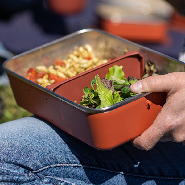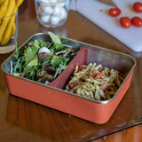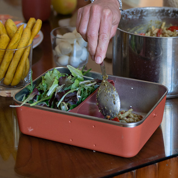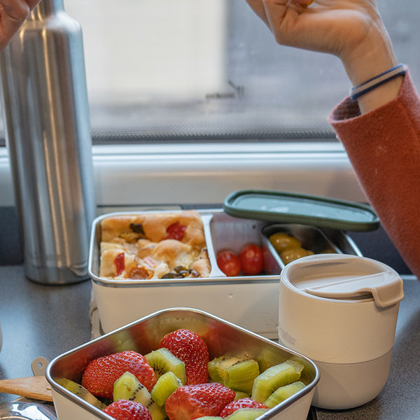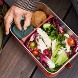 90%以上リサイクル材を使用したステンレススチール製で錆びたり風味を損なうこともないので、ランチボックスとしてはもちろん、おやつや作り置きのおかずなどを安全に保管することができます。