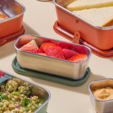 90%以上リサイクル材を使用したステンレススチール製で錆びたり風味を損なうこともないので、ランチボックスとしてはもちろん、おやつや作り置きのおかずなどを安全に保管することができます。