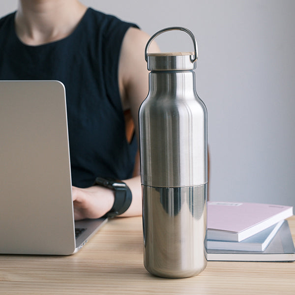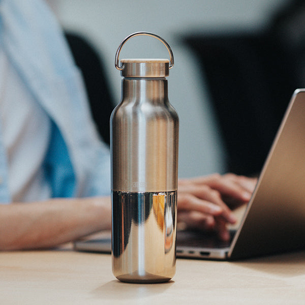 90%使用済み再生ステンレススチール(認証取得済み)、持続可能な方法で収穫された竹、そして食品グレードのシリコンという、たった3つの素材だけで作られたこのボトルは、まさにピュアそのものです。