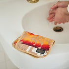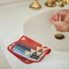 素材は肌触りの良いコットン100%で、表面は滑らかな肌触りのベロア調、裏面は吸水性に優れたループ織りになっており、肉厚ながらも柔らかく、ふっくらとした風合いが特徴です。コンパクトながらもしっかりと使える絶妙なサイズ感で小さなバッグやポケットにもすっきり収まり、ハンカチ代わりの手拭きや、外出時の汗拭きとしても活躍します。