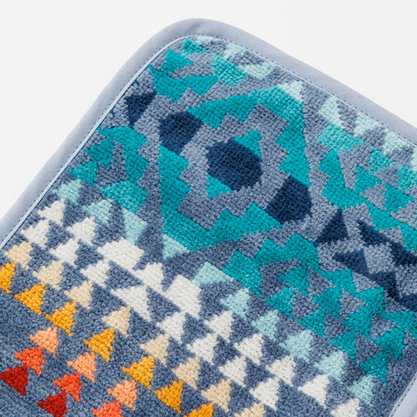 このマルチハーフクロスは、大きなジャガードタオル生地から形を裁断しているため、商品ごとに柄の配置が一点一点異なります。どんな柄の配置になるかはお手元に届いてからのお楽しみです。世界にひとつだけの個性が、きっと愛着を生むことでしょう。同じカラーを選んでも、異なる柄の配置でまた違った雰囲気を楽しめるのも魅力の一つです。