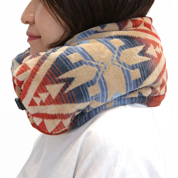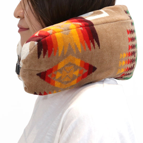 アウトドア好きにはおなじみのネイティブデザインが旅の気分を静かに盛り上げ、肌触りの良いコットン100%の上質なタオル生地が、長時間の移動やキャンプでのリラックスタイムに首元をやさしく、しっかりと支えてくれます。また、カバーは取り外して丸洗いが可能で、汗ばむ季節でも清潔に保てるため、いつでも快適にご使用いただけます。