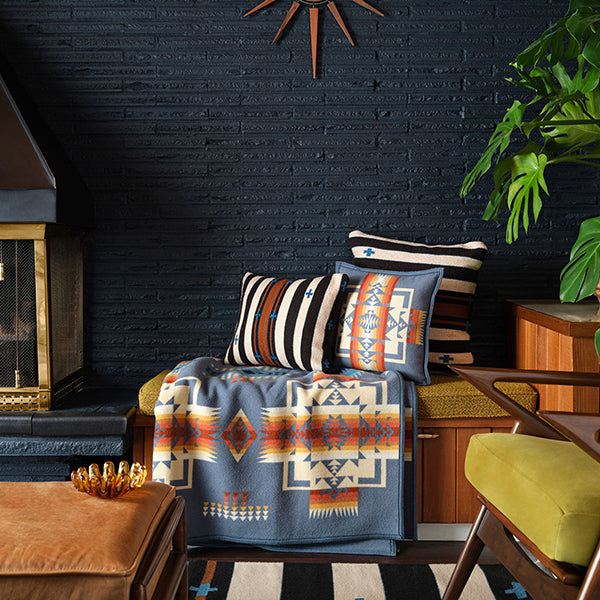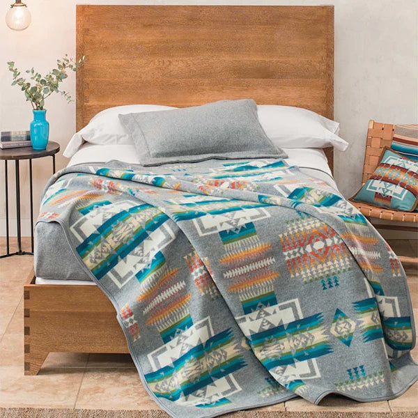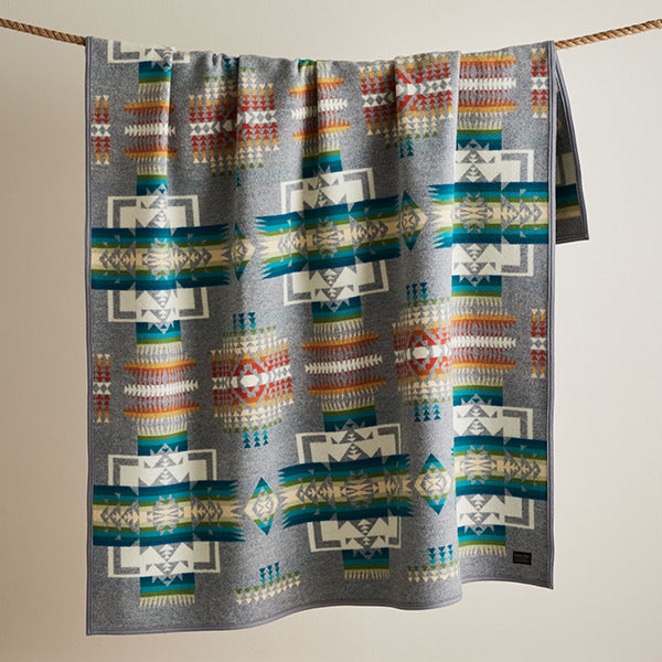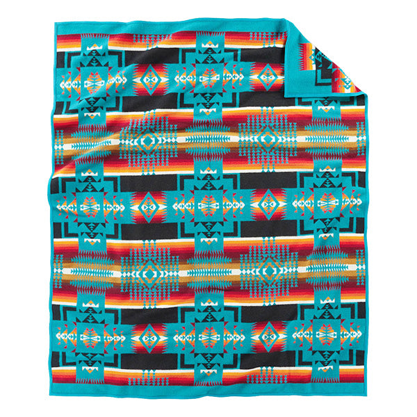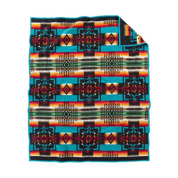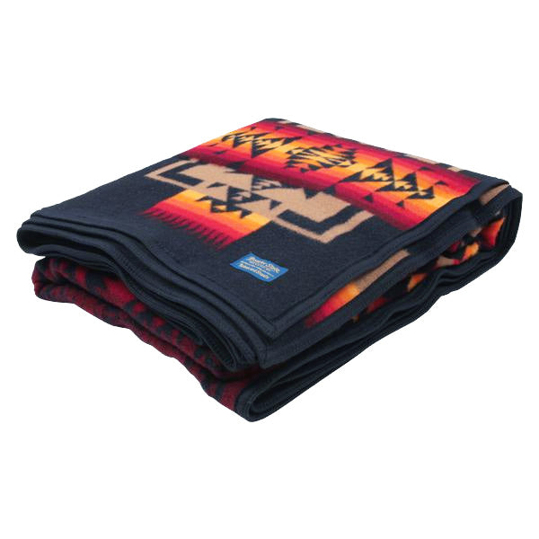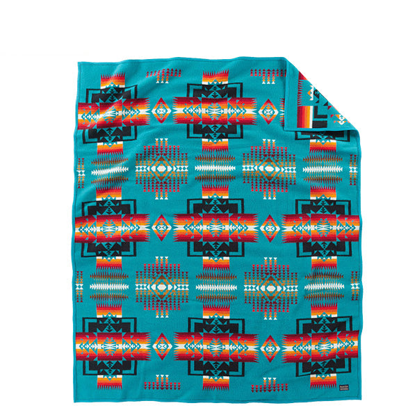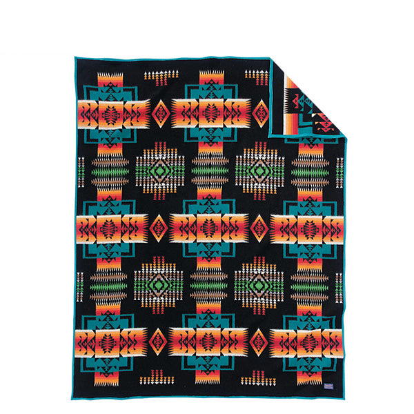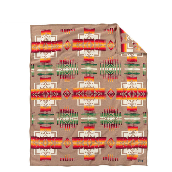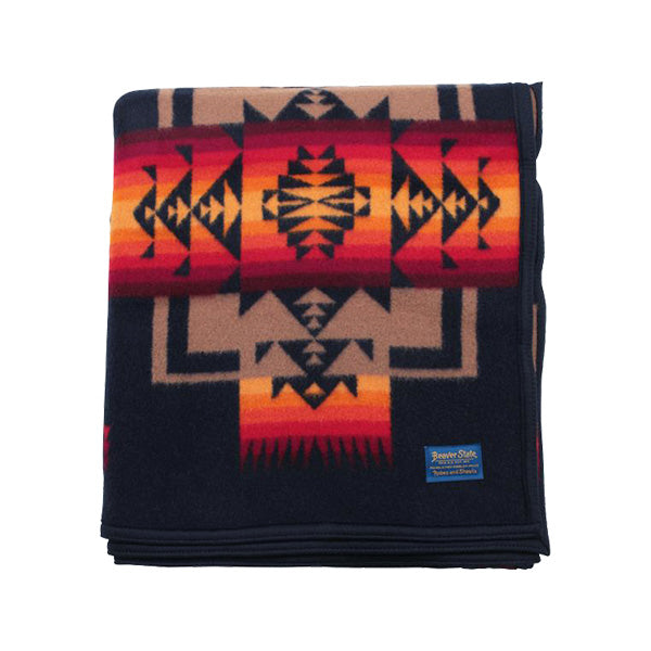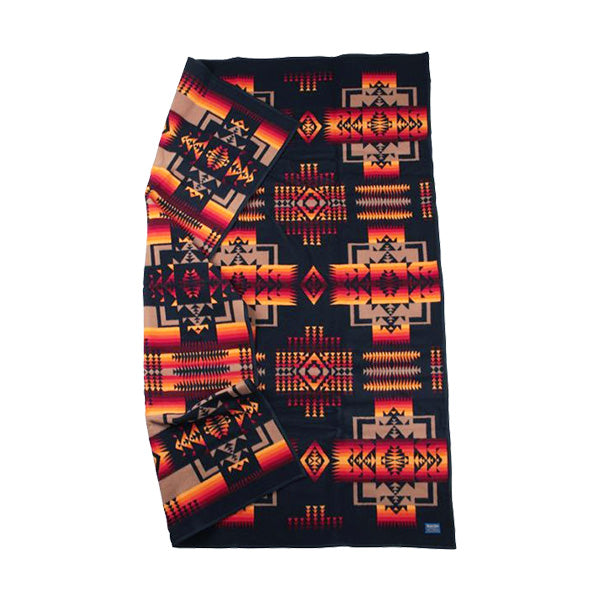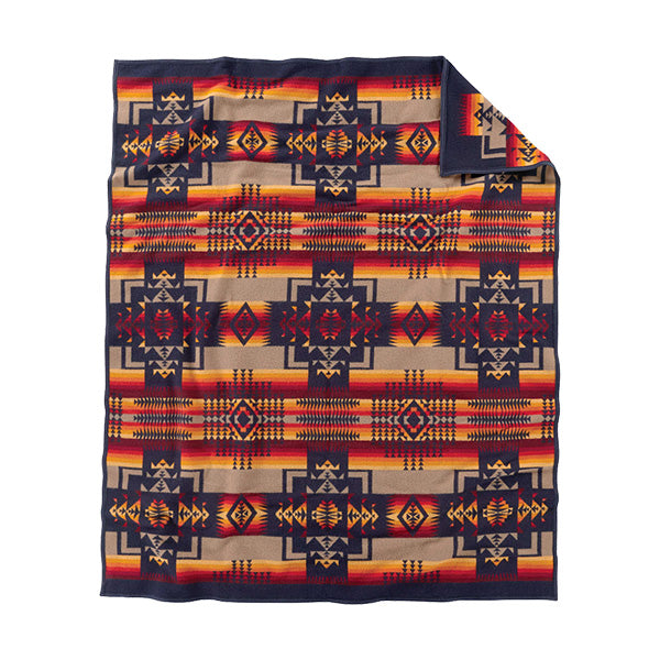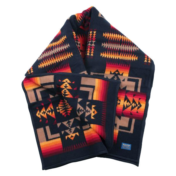 こちらのブランケットのデザインは誇り高きネイティブアメリカンの部族ネズバースの長ジョセフを称えたブランケットです。このデザインは1920年から生産され今日まで販売されているロングセラーブランケットで、この他にもたくさんのカラーを展開しています。品質の高さはネイティブアメリカンの部族会が正式に承認しています。