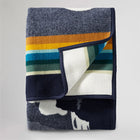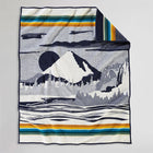 今なお、アメリカにあるMills(工場)で丁寧に織られているブランケットです。美しい山と月があしらわれたネイビーテイストは、ご自宅でもキャンプサイトでも、車に一枚積んでおくにしても、自慢の1枚になること間違いなしのデザインです。