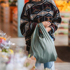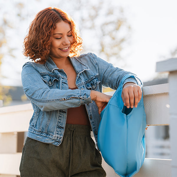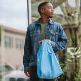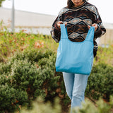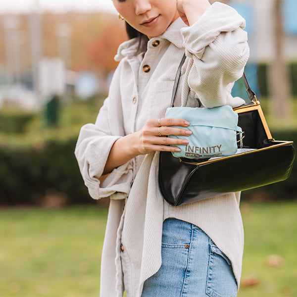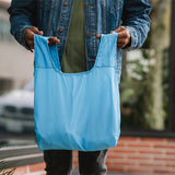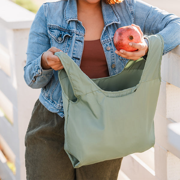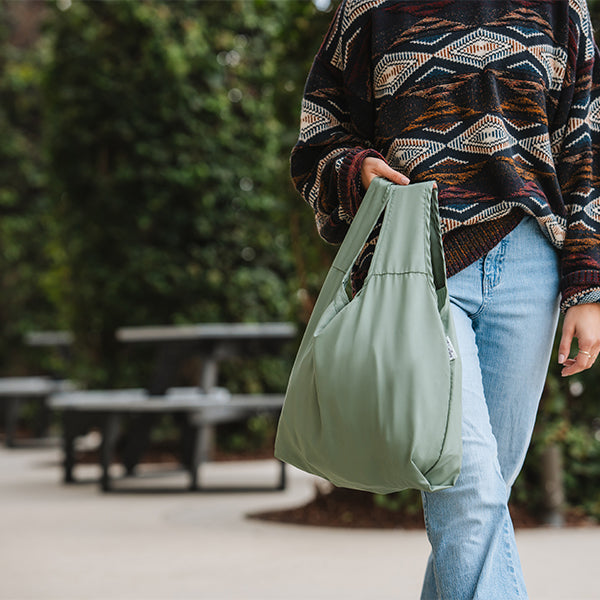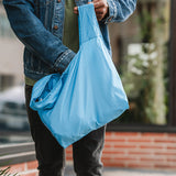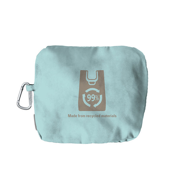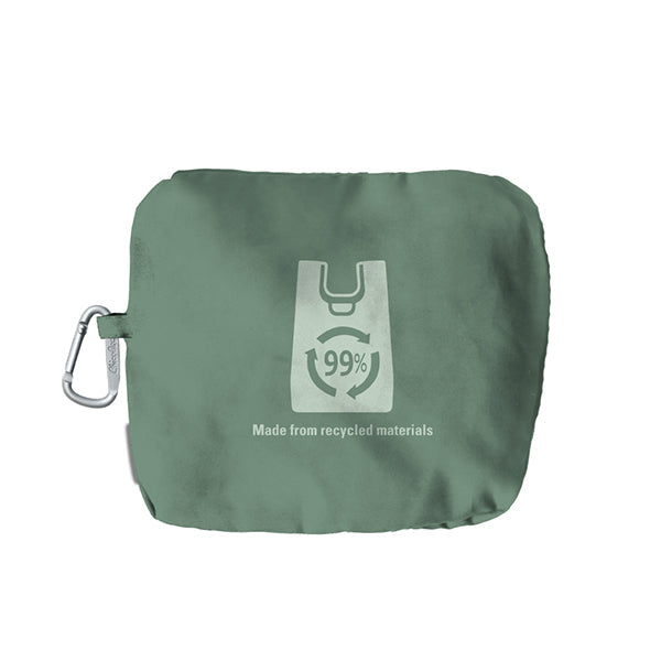 少し大きめに設計された縫い付けの収納袋が付いていて、いつでもコンパクトにバッグなどに入れて持ち運べます。旅行でのお土産を入れたり、日常の生活品の買い物を入れたりと様々なシーンで活躍します。特別な手洗いや洗剤は必要なく、いつもの通り洗濯機で洗えて(柔軟剤は必要ありません。) 、頻繁に使用し、何年も長持ちするように設計されています。GRS認証を受けた100%消費者使用後のリサイクル・ペットボトルから作られ、溶液(水なし)染色されているため、リサイクルされていない生地を従来の方法で染色するよりも、89%少ない水、63%少ないCO2、60%少ないエネルギーで染め上げています。