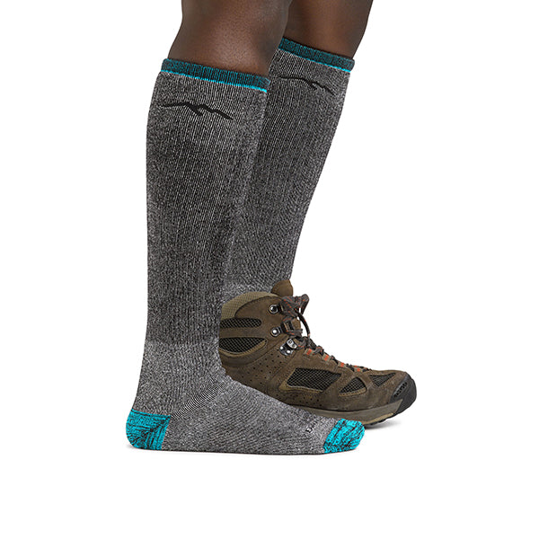 DARN TOUGH ダーンタフ ウィメンズ 1954 マウンテリニアリングオーバーカフ ヘビーウェイトフルクッションはメリノウールをDARN TOUGH VERMONTソックス独自のニッティング技術により密度の高く弾力性のあるループ編みにより高いクッション性で衝撃を吸収し、アンクル上部には、ずれにくいリビングを施し適切なフィットを実現した靴下です。 伸縮性のあるアーチサポートがあり、長時間・長期間のハイクにおいても快適に、そして耐久性はDarn Tough(驚く程タフ)です。アクティビティに対応しております。