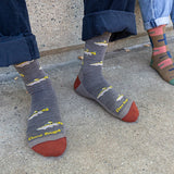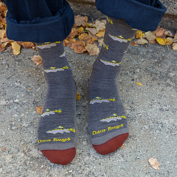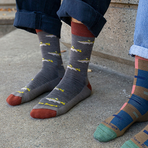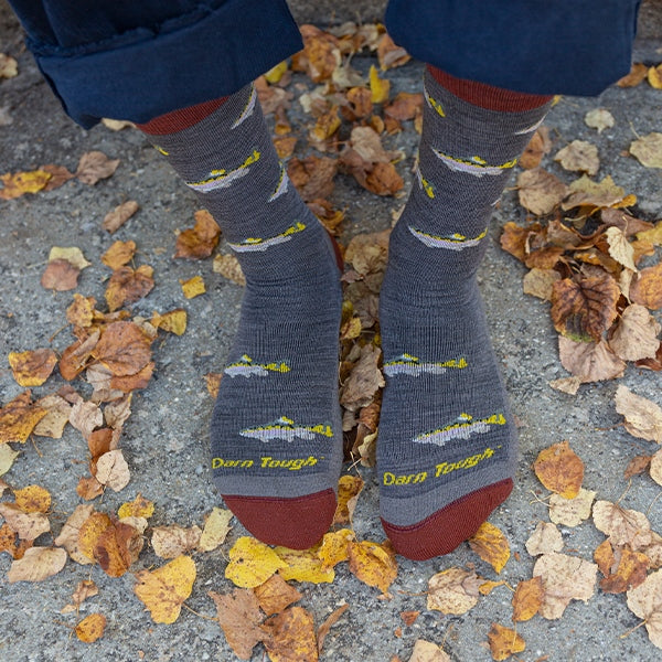 スコットランドのスペイ川と、フライフィッシングの第一人者でありミルの家長であるマーク・キャボットからインスピレーションを得ています。この軽量ライフスタイル・ソックスの足元には肌触りの良いクッションのためのテリーループが編み込まれ、メリノウールの特徴である丈夫な構造になっています。かかとから履き口までの長さは平均10.5インチで、カジュアルなスニーカーより約8インチ高くなります。トゥルーシームレス・トゥー・テクノロジーでつま先の縫い目をすべて閉じ、非常に滑らかで目立たない感触を実現しました。また、絹のように柔らかいメリノウールは、通気性が良く、長時間履いても疲れにくい快適さを提供します。