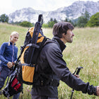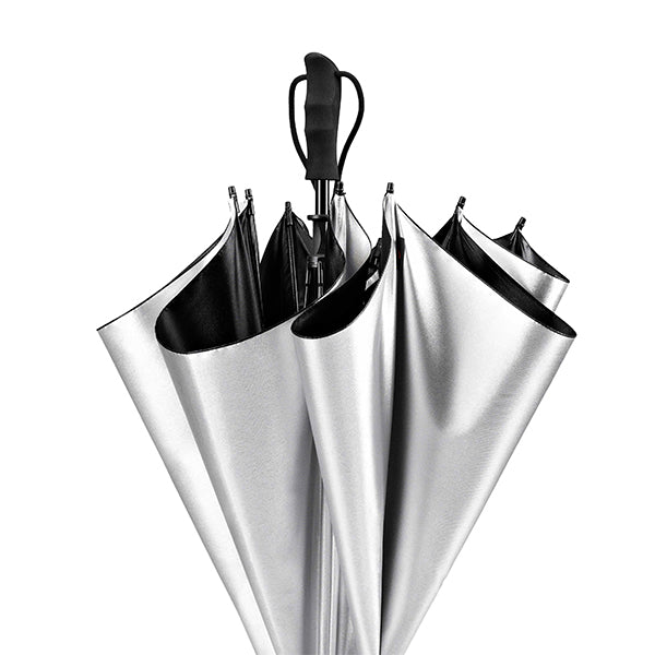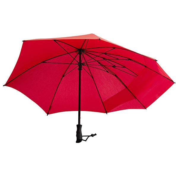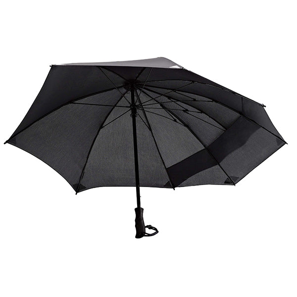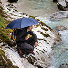 傘を開くと後部のキャノピー部分が自動的に伸び、バックパックと背中の間のスペースに雨が入らないよう守ってくれます。EVAハードフォームのハンドルは人間工学に基づいたつくりなのでとても握りやすく、手に馴染みます。野外でのバックパッキングシーンだけではなく、お気に入りのバックパックを濡らしたくない方にもオススメしたい傘です。