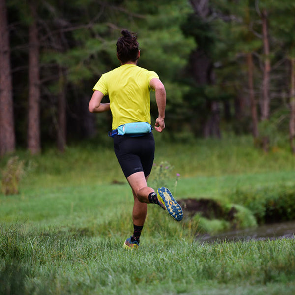 背面部分には、ウルトラフラスク550ハイブリッドボトルを収納できる横長のボトルポケットを装備しており、4ウェイストレッチメッシュは、ボトルが不用意に飛び出すのを防ぎます。また、ポケットの中身が背中に当たらないよう、発泡材を追加しており、左手でも右手でもアクセスすることができます。ウェイビングは通気性の良いウェビングを採用しており汗を逃がし、擦れを防ぎます。フロント部分は以前のモデルよりも容量が増え、荷物のバランスを保ちながらパック全体の高さを低く抑えています。フロントのフローティングポケットには余分なウェイビングを収納するスペースがあります。ウエストパックに採用されている円錐形のフォルムは、30年の開発を通じて改良され、快適で滑りにくいフィット感を実現しています。