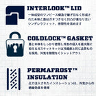 少人数のキャンプで食料を持ち運ぶには最適なサイズです。一般的なクーラーボックスとは違い、激流に耐えるホワイトウォーターカヤックと同じロテーショナルモールド(回転成形工法)を採用したワンピース構造です。蓋、ボディ共に継ぎ目無くモールドされ、耐衝撃性と、長期使用においての耐久性に優れています。一般的なクーラーボックスはインシュレーションとボディの外壁が接着剤で接合されているモデルが多く、時間が経つにつれ接着剤の劣化による剥離やつなぎのパーツが破損してしまう事があります。YETIクーラーは圧力注入された分厚い5cmのインシュレーションと密閉性の高いシステムにより保冷力を高め、他社製品を寄せ付けない高い性能を発揮します。