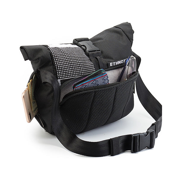 ・両サイドには携帯電話、サングラス、その他のアクセサリー用の隠しジッパーポケットが備わる