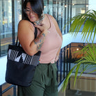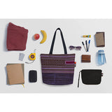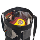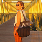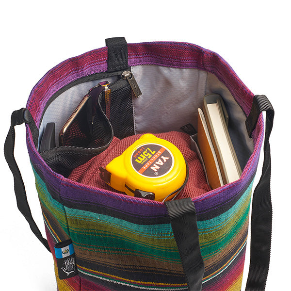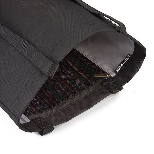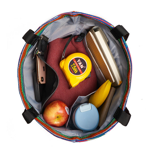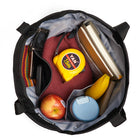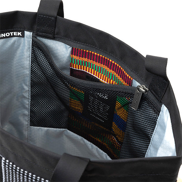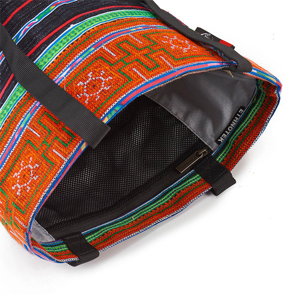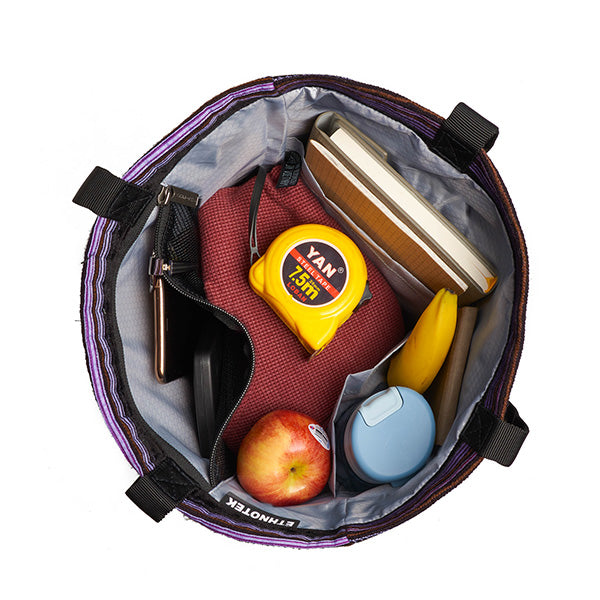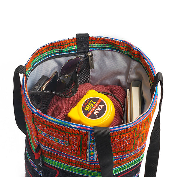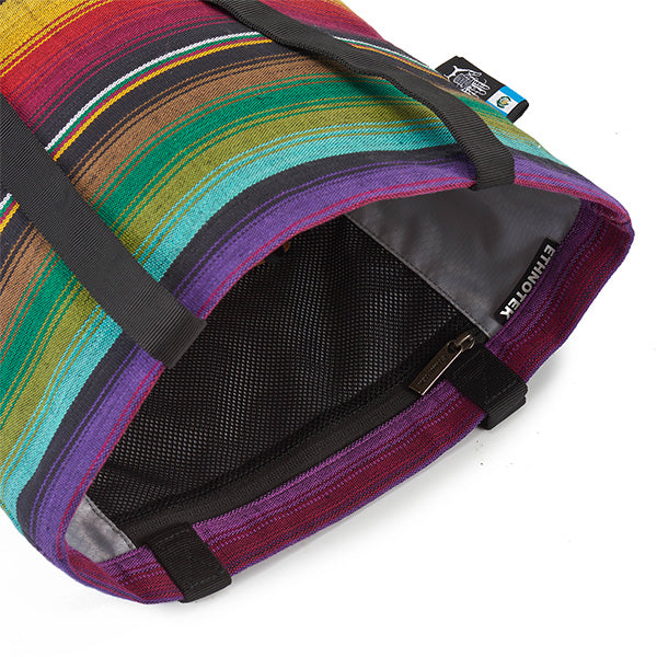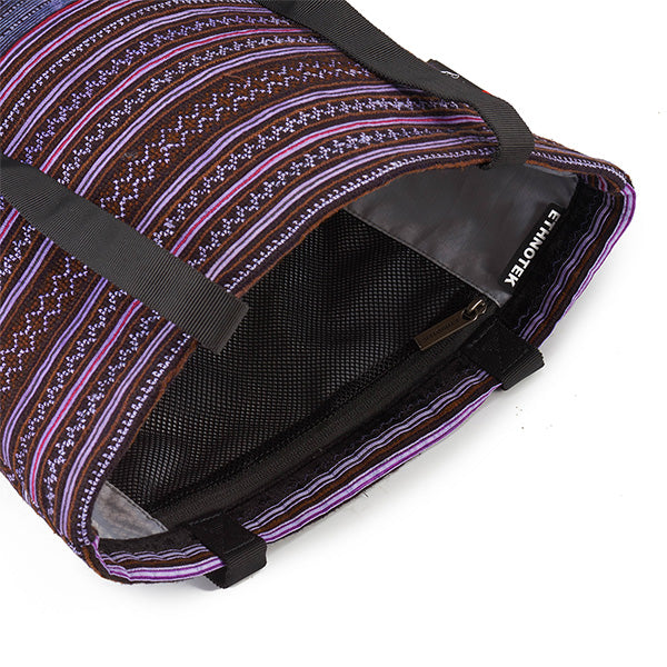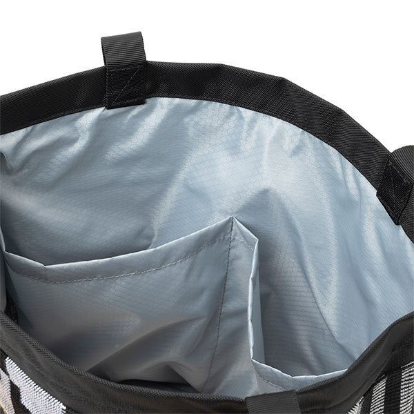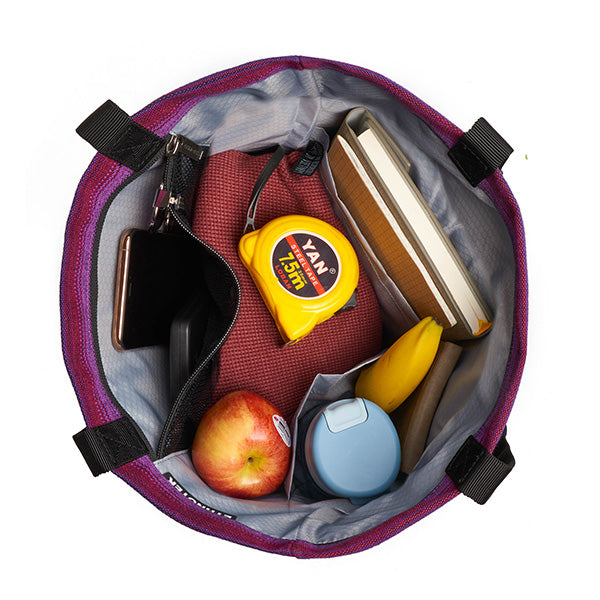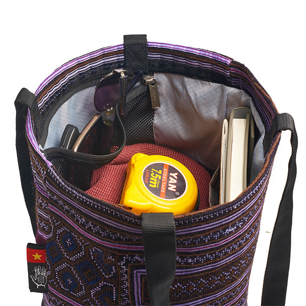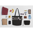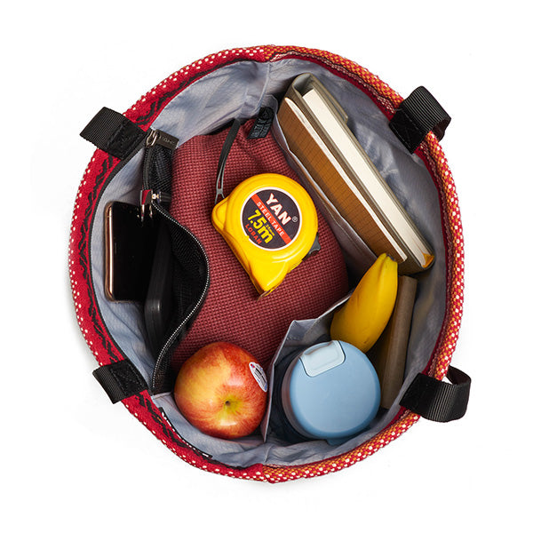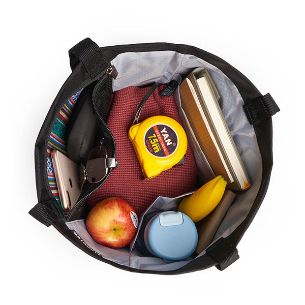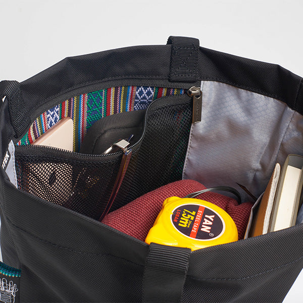 ワインボトルを立てて収納できる縦長デザインで内側にはメッシュジッパーポケット、2つのスリップポケットがついています。