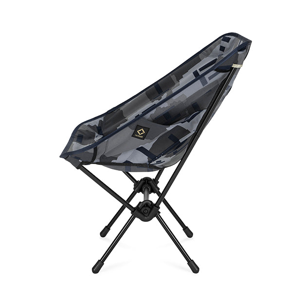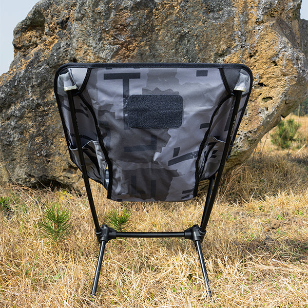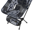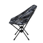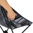 ヘリノックスのチェアは持ち運びに便利なコンパクトさが特徴のひとつ。故に、無駄を削いだデザインの中で座り心地の快適性を追求しています。袋から取り出して、脚部分を組み立てて座面のシートを取り付ければ、直ぐに座れる手軽な折りたたみ式です。ミリタリーラインならではの無骨ながらも洗練されたデザインが特徴で、カラーリングや各部のディティールにこだわりが盛り込まれています。ジッパー付きのポリエステル生地の収納袋は、フレームに付けることで小物を入れることができるポケットにもなります。また、両サイドのカーゴポケットには携帯電話や小物等を収納可能です。背面にはベルクロが付いているので、ワッペンや夜間視認性を上げるための反射板などを付けてカスタマイズすることも可能です。