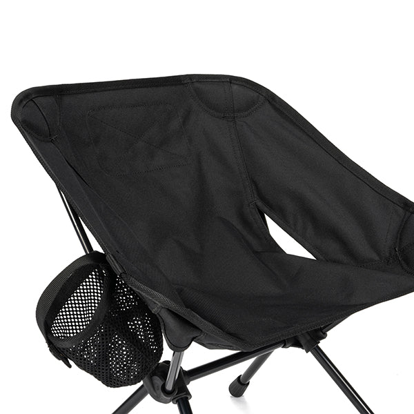 チェアワンをベースにミニサイズにし、さらにコンパクトかつ軽量化したモデルです。ヘリノックスのチェアは持ち運びに便利なコンパクトさが特徴のひとつ。故に、無駄を削いだデザインの中で座り心地の快適性を追求しています。袋から取り出して、脚部分を組み立てて座面のシートを取り付ければ、直ぐに座れる手軽な折りたたみ式です。チェアミニは収納時にウォーターボトル程度の大きさになるので、バックパック旅行や自転車、バイク旅行に最適です。片側のカーゴポケットには小物等を収納可能で、反対側にはメッシュ素材のボトルポケットが付属しています。背面にはベルクロが付いているので、ワッペンや夜間視認性を上げるための反射板などを付けてカスタマイズ可能。耐荷重は90kgで、子供から大人までお使いいただけます。