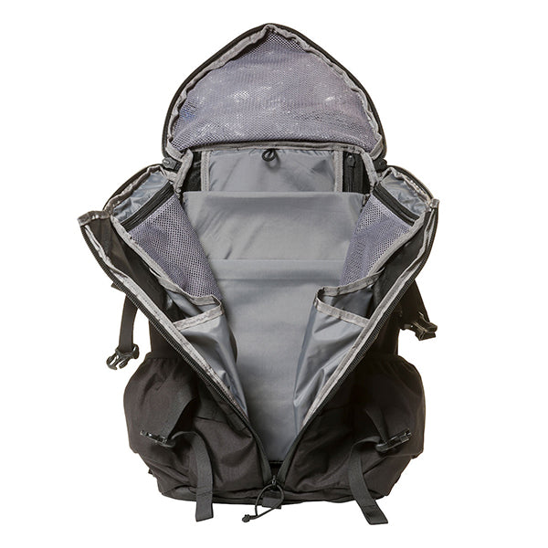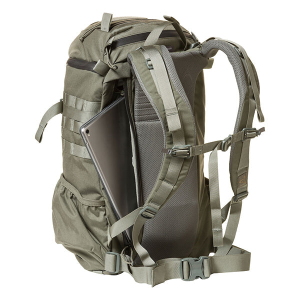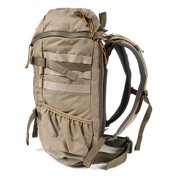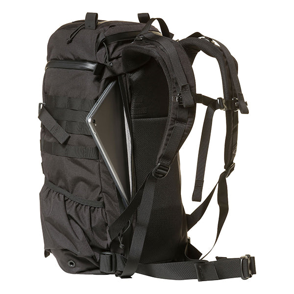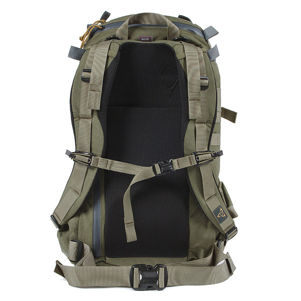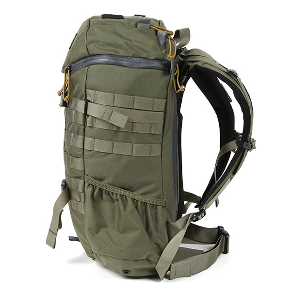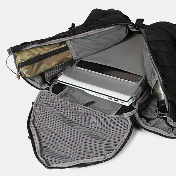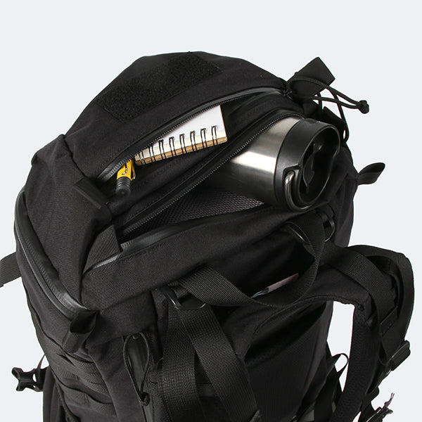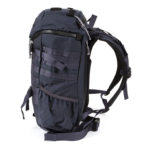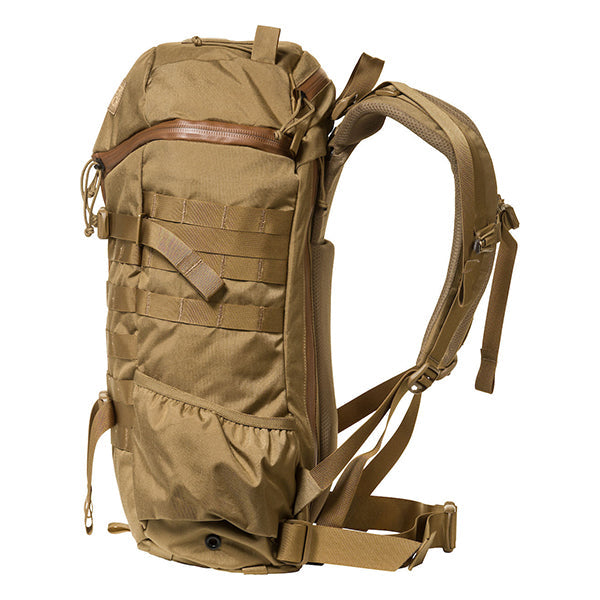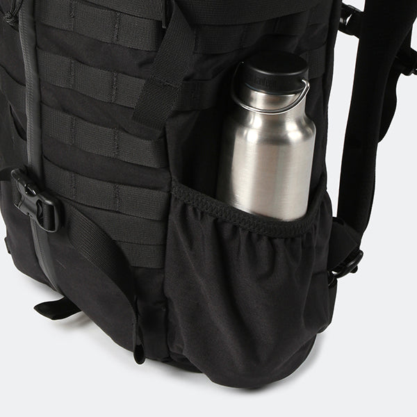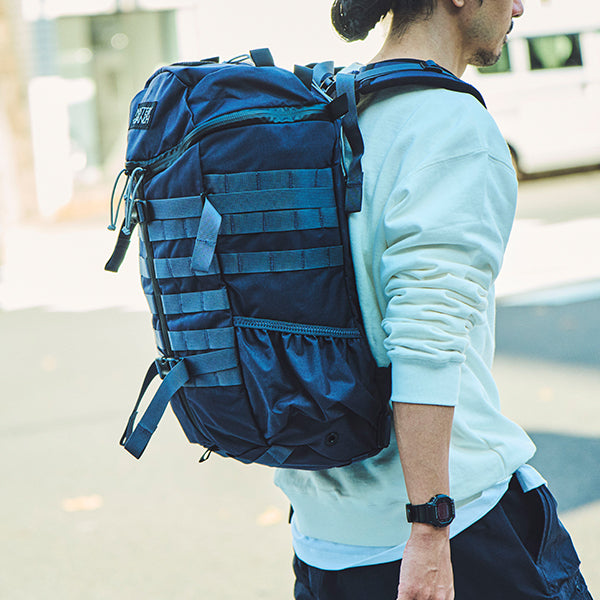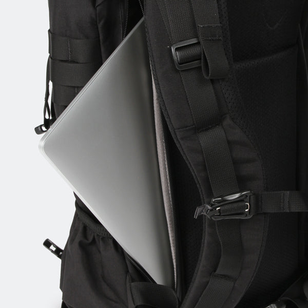 MOLLEシステムなどミリタリー由来のディティールも残しつつ、内部にはPC/ドキュメントスリーブが採用されサイドジッパーから素早い出し入れが可能です。背面調整が可能なフューチュラヨークシステムを搭載し、脱着可能なウェストベルトが付きます。27リットルの容量は日々のビジネスからご旅行、日帰りのトレッキングやハイキングにも対応した汎用性の高いバックパックと言えるでしょう。