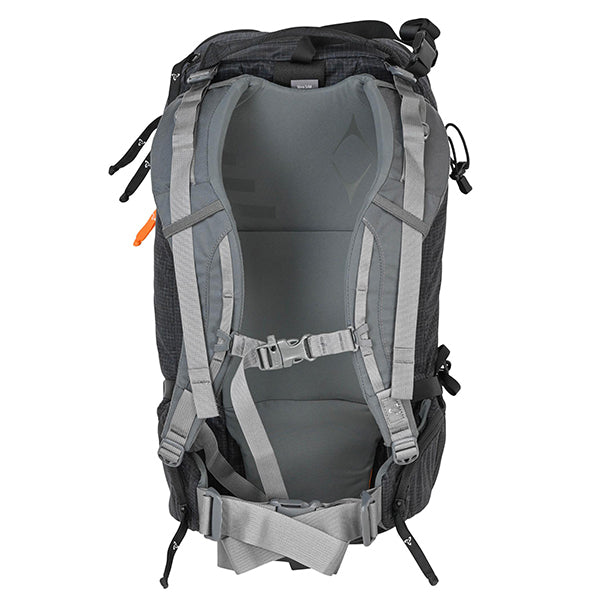 アップデートされたサドルピークは26Lの容量で、新たに採用された320デニールファントムリップストップナイロンは表面にワックスコーティングが施され撥水性を高めています。フロントパネルには頑丈なカーボナイトコーティングを施した840Dナイロンを使用し、外部補強パネルで鋭いエッジから保護します。バックカントリーにもリゾートスキーにも多目的に使用できます。ゴーグル用のポケット、ヘルメットホルダー、素早くアクセスできるアバランチギアポケットが備わり、スキーやスノーボードを取り付け可能です。