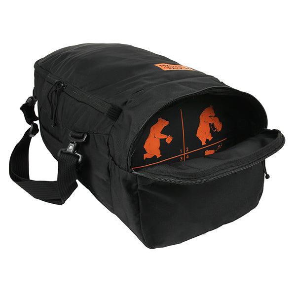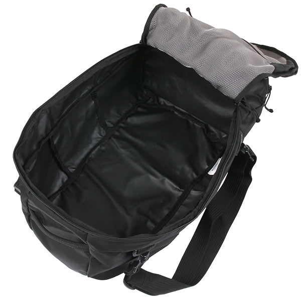 セーターよりも少ないスペースで保管・携帯できますので、旅先で増えた荷物を入れるための予備として持ち歩いても邪魔になりません。馬蹄型の大きな開口部からアクセスするメインコンパートメント内には2つのポケットが備わり、ブーツコンパートメントには靴や汚れた衣類を入れるのに適しています。ショルダーストラップは、バックパックやサイドキャリーとして使用でき、簡単に取り外しも可能ですので車などで運搬の際にストラップが引っかかってしまう心配がありません。全4方向にハンドルが設けられているので、バックを取り出す際にどの方向からも引き出す事ができます。