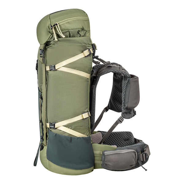 ブリッジャー55は新設計の柔軟性があるワイヤーフレームにショルダーパッド、背面パッドの配列により通気性に優れています。ハイドレーションにアクセスしやすいエンデュランスヨーク(ショルダーハーネス)は左右にツールポケットが付き、フロントには装備を素早く取り出せるストレッチ素材のツールポケットがあり優れた収納性を備えています。取り外しが可能なトップリッドはパック本体のショルダーハーネスを装着できアタックパックとして使用できます。