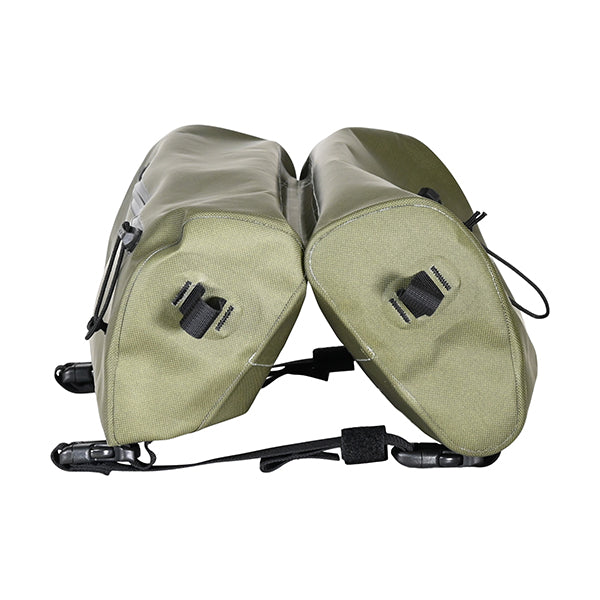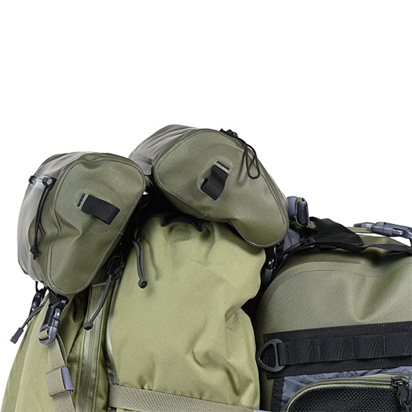 840デニールバリスティックナイロンに両面TPUコーティングを施す事で、防水性を極限まで高めております。RF溶接(高周波溶接)により高強度と密閉性を実現しています。Tru-Zip防水ジッパーを使用する事で、中身へのスムーズなアクセス、防水性を両立させた機能性です。二つメインコンパートメントを設けることで、トップリッドとして使用しコンプレッションした際も、容量が潰されないデザインです。バックカントリーや悪天候の登山の際に、雨や雪から大切なギアをしっかり保護して頂けます。