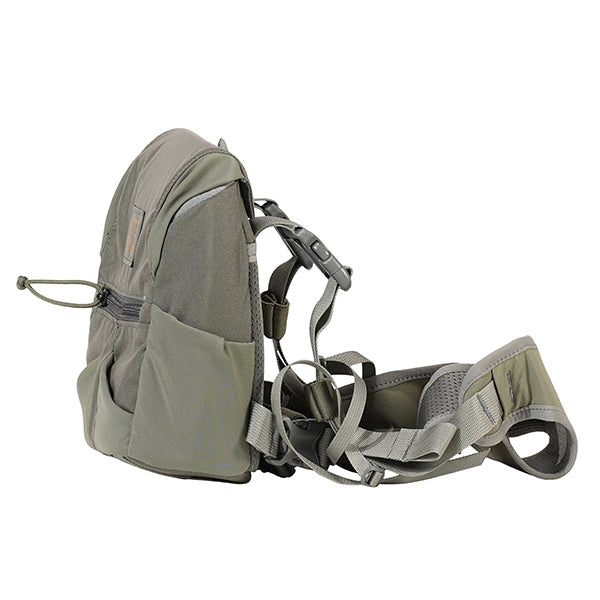 身体に快適にフィットするデザインで、単体での使用はもちろん、バックパックとも組み合わせて使用できます。片手で開閉できるクイックアクセスデザインでフロントにはジッパー付きのポケットが備わっています。底面にはベアスプレーホルスターやテックホルスターなどのアクセサリーを取り付け可能で、必需品をフロントにまとめて携帯することが可能です。