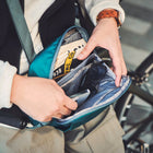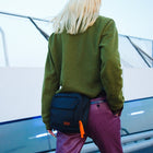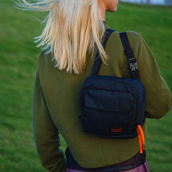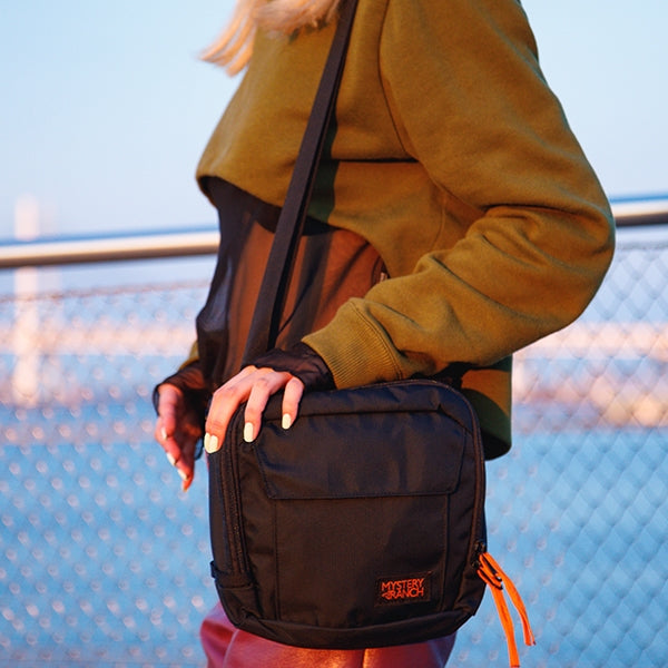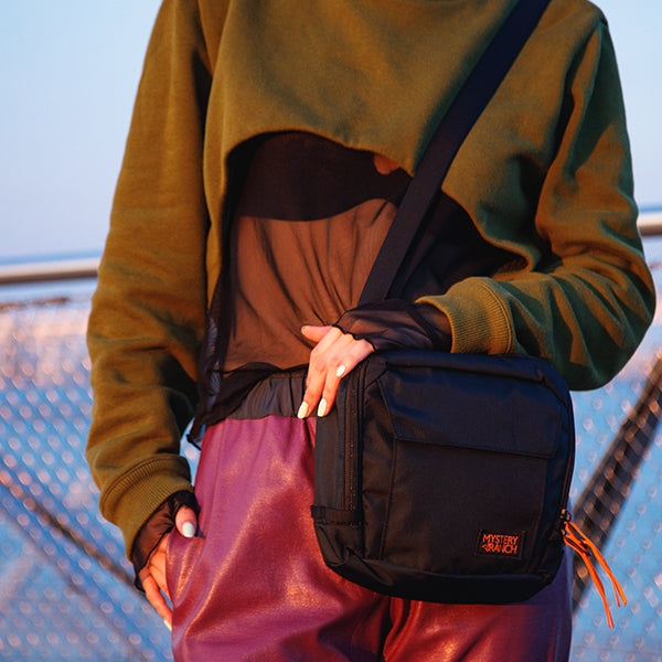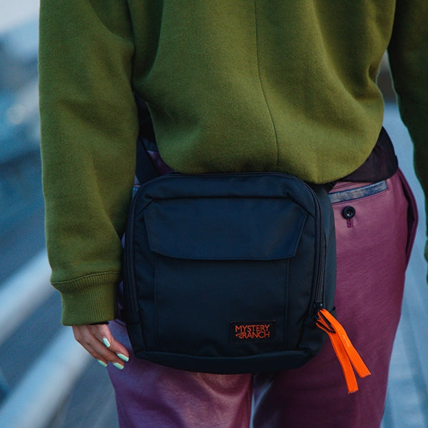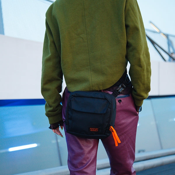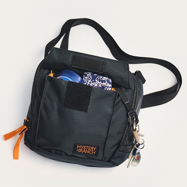 ベルクロで開閉できるフロントのアコーディオンポケットは、取り出しやすいキーチェーン付きで、必需品を入れておくのに最適。背面のポケットにはスマートフォンを入れるのがお勧めです。取り出しやすく、バイブレーションの振動にも気づきやすいスリットポケットです。ジッパーの端に配置されたループにジッパープルを通すことによりちょっとした防犯になったり、サングラスなどを一時的にかけることができます。
