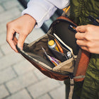 財布、携帯電話など必要最低限のアイテムを収納するための十分なスペースを備えており、熟考されたポケットにより見た目より多くの荷物を持ち運ぶことができます。