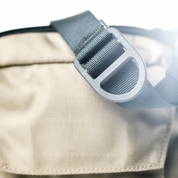 ショルダーストラップの長さ調整が簡単に行える新型サムロックシステムは、ショルダーストラップについているループ(Dリング)を上下に引っ張るだけできつく締めたり、緩めたりの調整が容易に行えます。ショルダーストラップのバックルを外せば簡単に着脱ができます。(ストラップをいちばん締めた状態でもワンアクションでバックを下すことができるので、毎回のアクションが少なくなり、大変楽です!)また、ショルダーストラップを短くすればヒップパックとしても使用可能です。