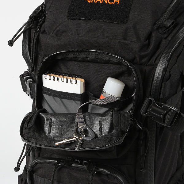 ・:3つのメインポケット(1つはキークリップ付き)とMOLLシステムで収納力アップ