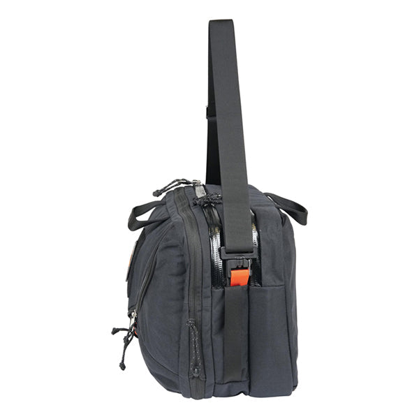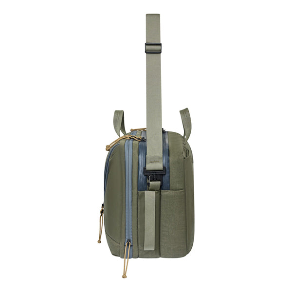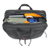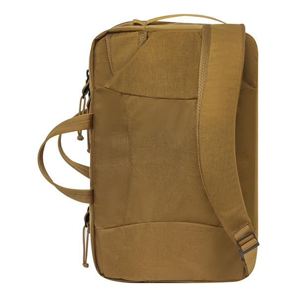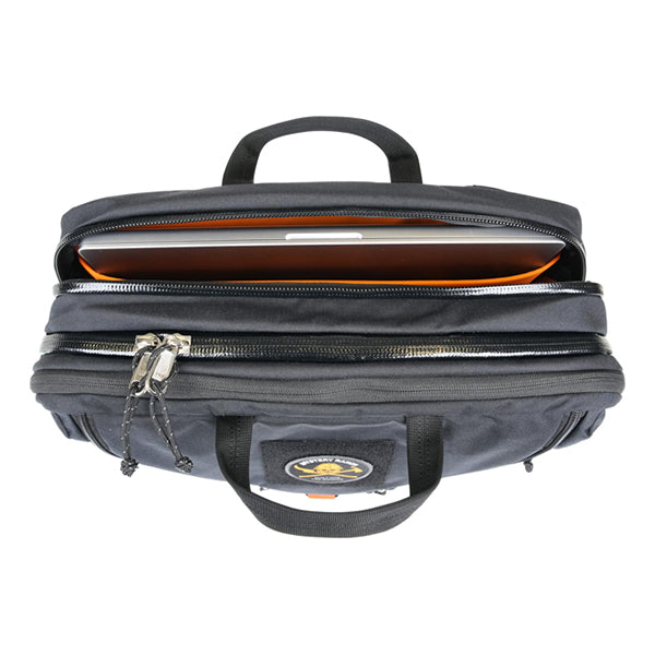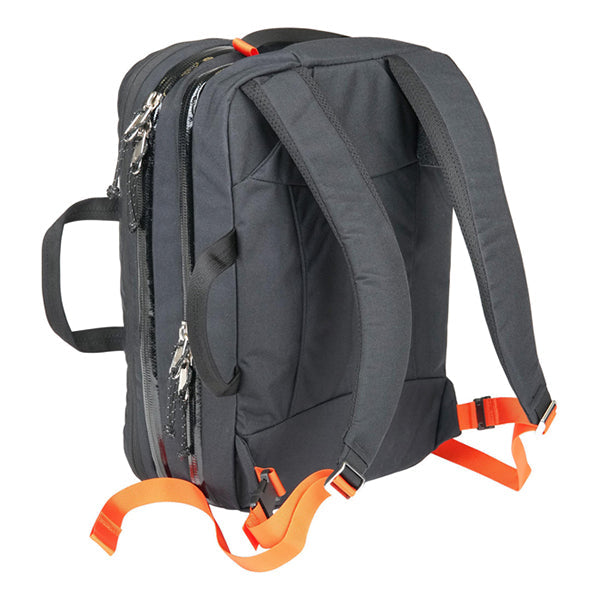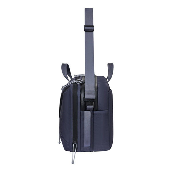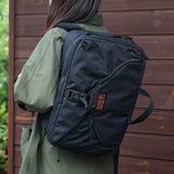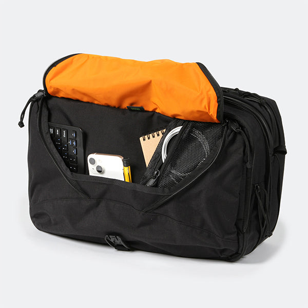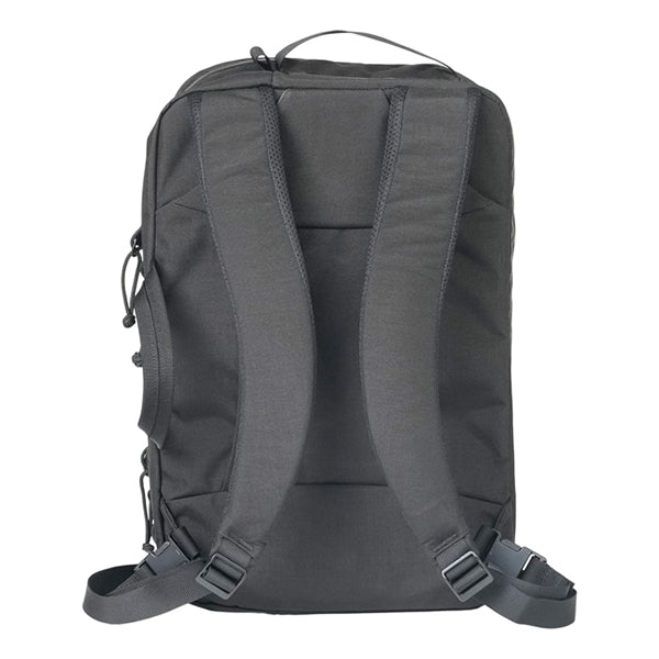 手持ち、バックパック、ショルダーでの使用に加えて、コンプレッションジッパーがパックの外側をぐるっと覆う設定で容量5Lの拡張が可能です。背面側には15インチまで対応する独立したPCスリーブを装備しており、ビジネスシーンでスマートにPCを取り出すことができます。メインコンパートメント、フロントにはポケットが充実しており、バッテリーパック、タブレット、ヘッドフォンなどを収納するスペースがあります。