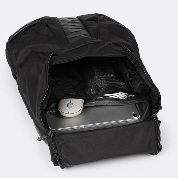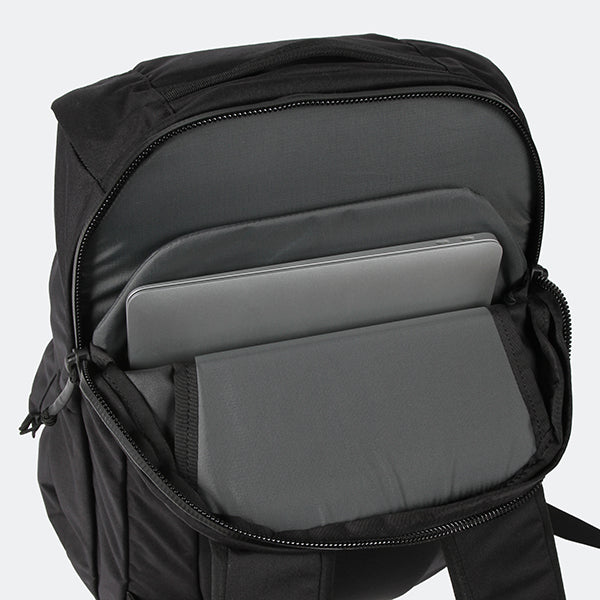 ・フローティングスリーブ|ラップトップスリーブがバックパックの底部分から少し底上げされた位置に設計されており、バックパックを置いた際の電子機器への衝撃を軽減