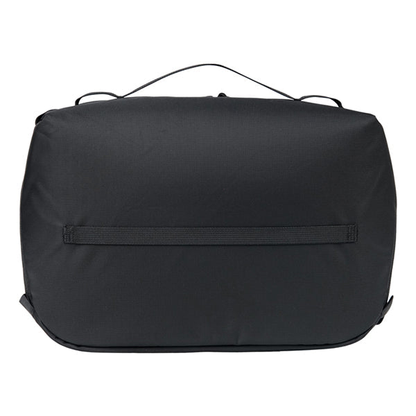 ・ラージサイズの背面にはコードや小型機器用のスライダーポケットが1つ、トップハンドルには付属のショルダーストラップを取り付けられるループ付き