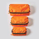 ボイドバッグS、M、Lを3点セットにしました。ギアやアクセサリーを整理整頓するのに必要なパッキングハックです。読書用品、洗面用具、電子機器、スナックなど、収納したいものに対応する複数のバッグサイズがあります。シンプルですが、毎日使うものなので、ジッパーの開閉のスムースさやシンプルで飽きの来ないこのポーチはきっとあなたの日常になじむ、そんなアイテムです。