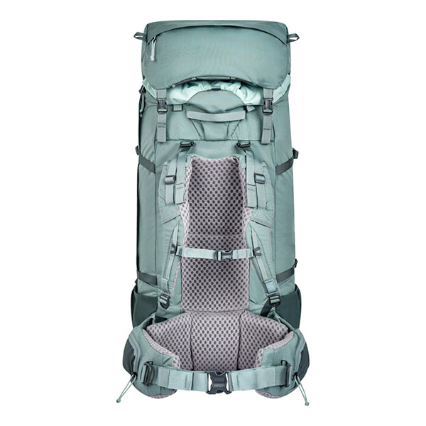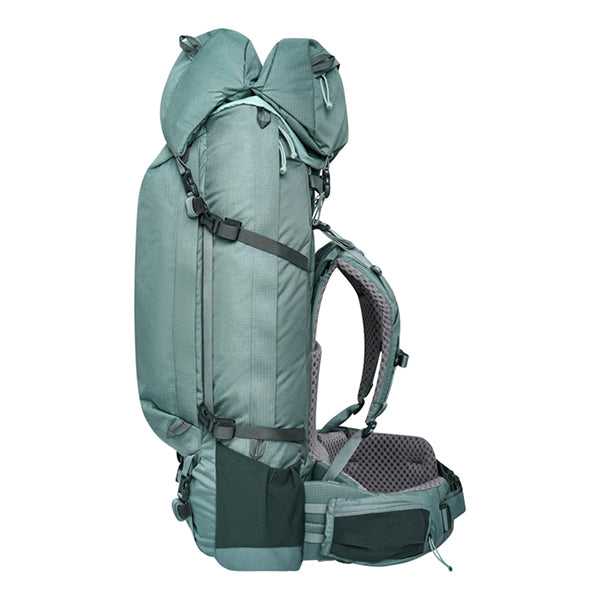 縦走登山に必要なものすべてを収納できる+αのスペースを持つ70Lのバックパックは、荷物の多い登山者やアソビや楽しみを持ち運ぶ登山者にぴったりです。登山で必要とする最低限の荷物に加え、リラックスするためのチェアや宴会の必需品など余分なものも収納できるサイズに設計されています。内部フレームには2本のカーボンファイバー製ステイを使用、上部の荷重制御と荷重分散(重量を腰に移す)をサポートします。フューチュラヨーク(あなたの肩から腰の長さに合わせて調整可能な背面長)は簡単に微調整することができます。体が触れる背面とハーネス部は金型で穴をあける加工を行ったウレタンフォームを採用し高い通気性を確保しました。1本の長いサイドジッパーで内部アクセスが行え、多数の外部ポケットにより、効率的なパッキングが可能です。改良された素材やフレームにより軽量化を実現しつつ、確かな収容量で登山者の要望に応えます。