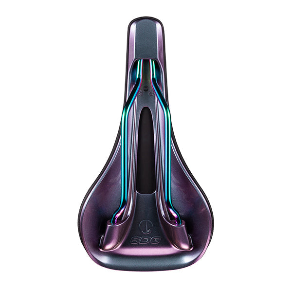 SDG エスディージー ベルエアーV3 -ラックスアロイは、SDGの名前を不動のものとした伝説的サドルBEL-AIRの最新バージョンです。縫い目や出っ張りの無いスムースでシャープな造形に進化しています。ショートレングスで柔軟なベース素材とペダリングを安定させるテールデザインにより、幅広いライディングシーンに対応します。オイルスリックカラーのFuelは限定モデルです。